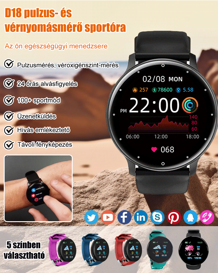 D18 pulzus- és vérnyomásmérő sportóra