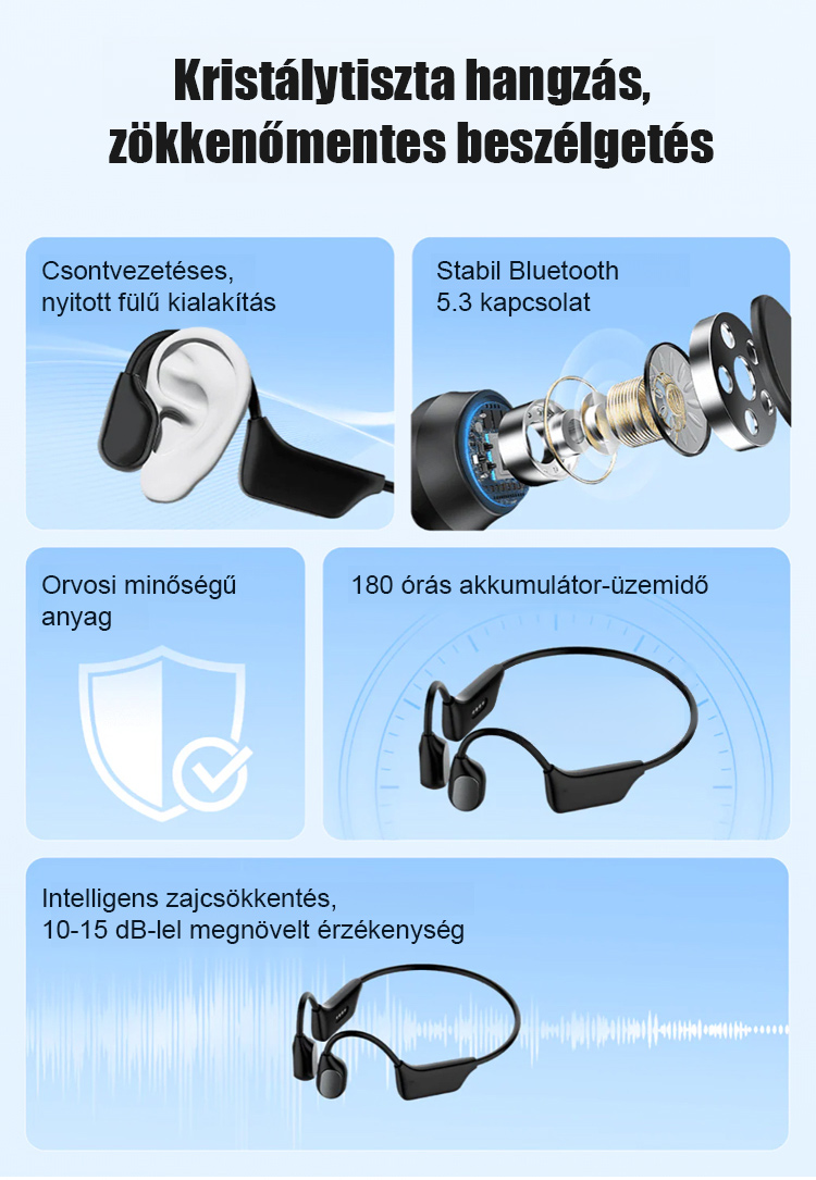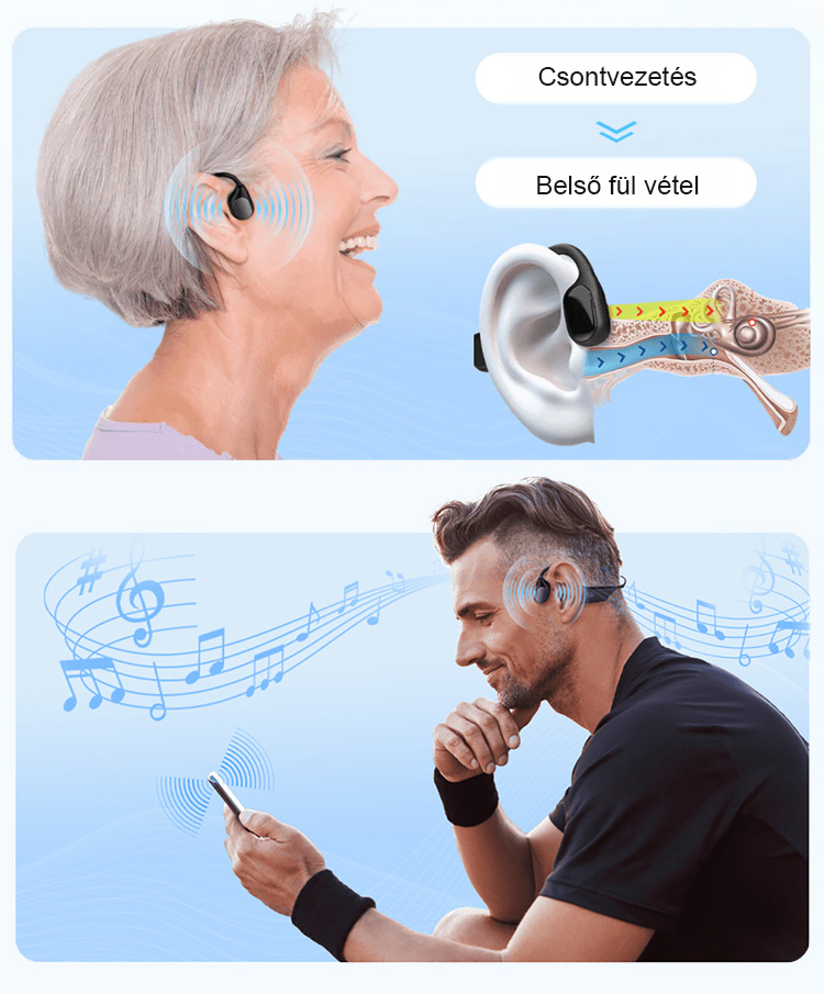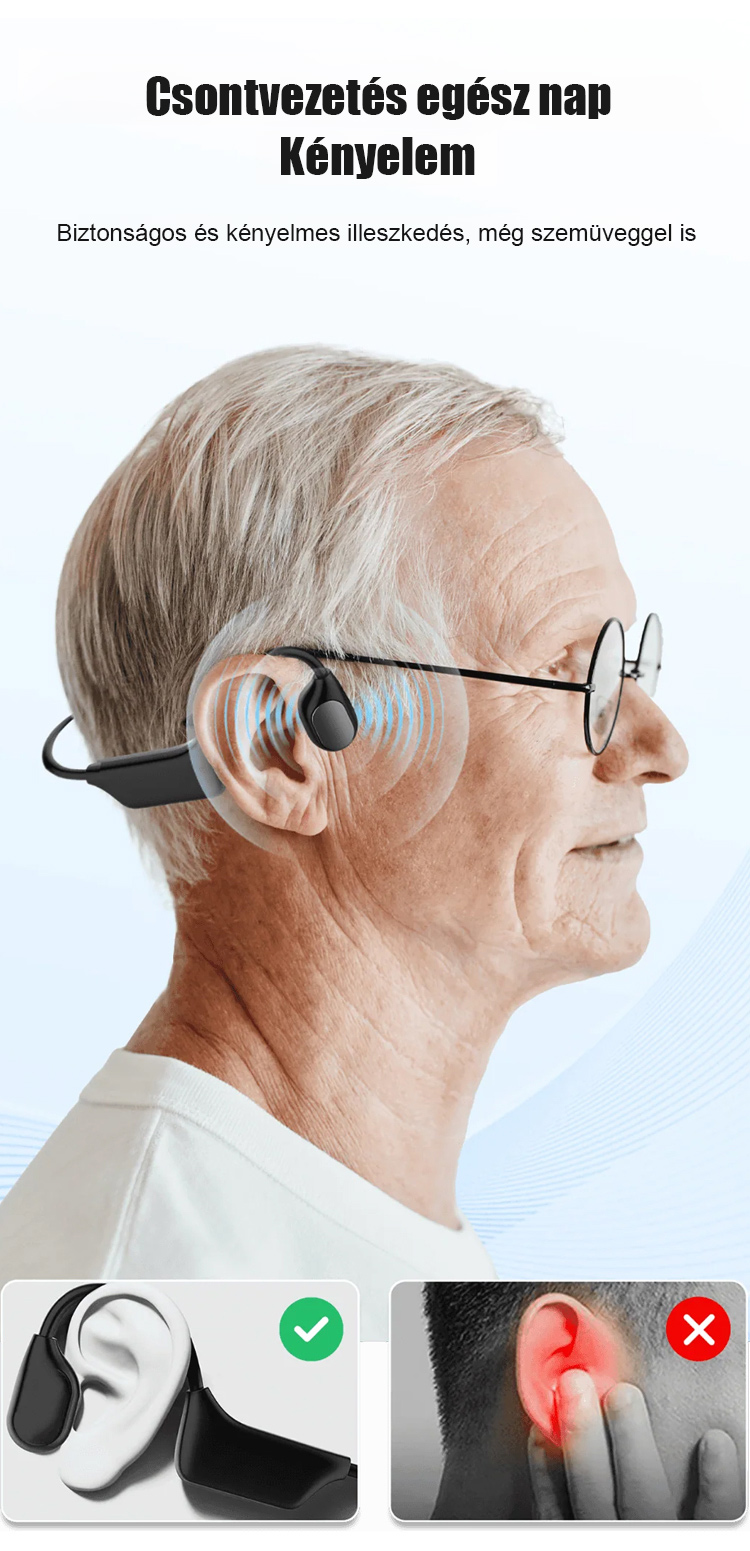 【A tiszta hallás világa】Csontvezetéses Bluetooth fejhallgató hallókészülék,még egy 60 éves is könnyen elsajátíthatja a használatát