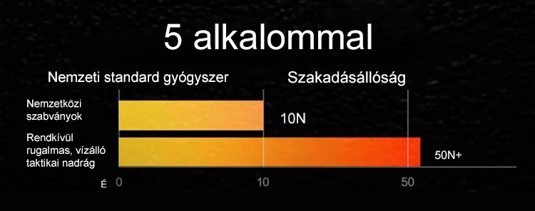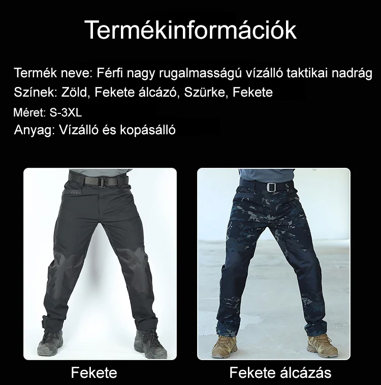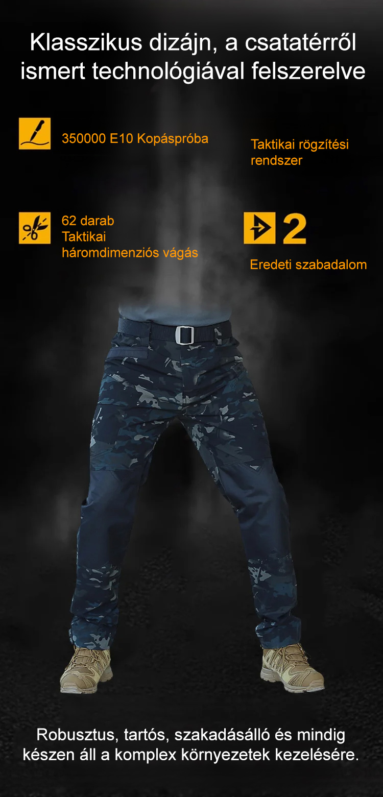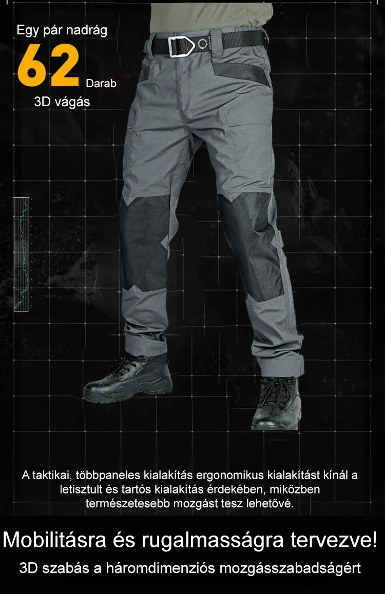 Katonai minőségű taktikai nadrág! Mentőosztályú vízálló anyagból készült, 200 kg teherbírással. A megerősített varrások maximális mozgásszabadságot biztosítanak. Frissítsd le szabadtéri felszerelésedet most!