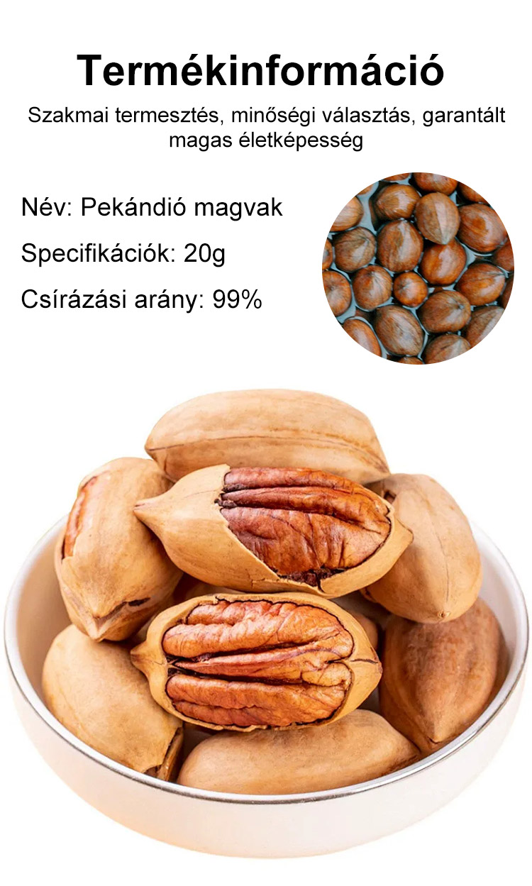 Importált pekándió magok az USA-ból, professzionálisan termesztve, garantáltan magas túlélési arány.